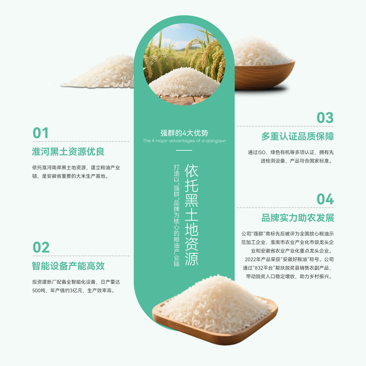 - 壽縣強群糧油貿(mào)易有限公司成立于2011年,座落在淮南市壽縣澗溝鎮(zhèn),是一家集種植、加工、收儲、銷售于一體、以生產(chǎn)中、高檔質(zhì)優(yōu)、特色類大米為主的綜合性企業(yè)。公司依托準河南岸的黑土地資源,打造以“強群”品牌為核心的糧油產(chǎn)業(yè)鏈,是安徽省重要的大米生產(chǎn)基地。 為響應市場增長需求,公司2021年啟動二期擴產(chǎn)工程,其中新生產(chǎn)廠區(qū)建設投入資金近億元,建設現(xiàn)代化新生產(chǎn)線,總占地面積約4000...